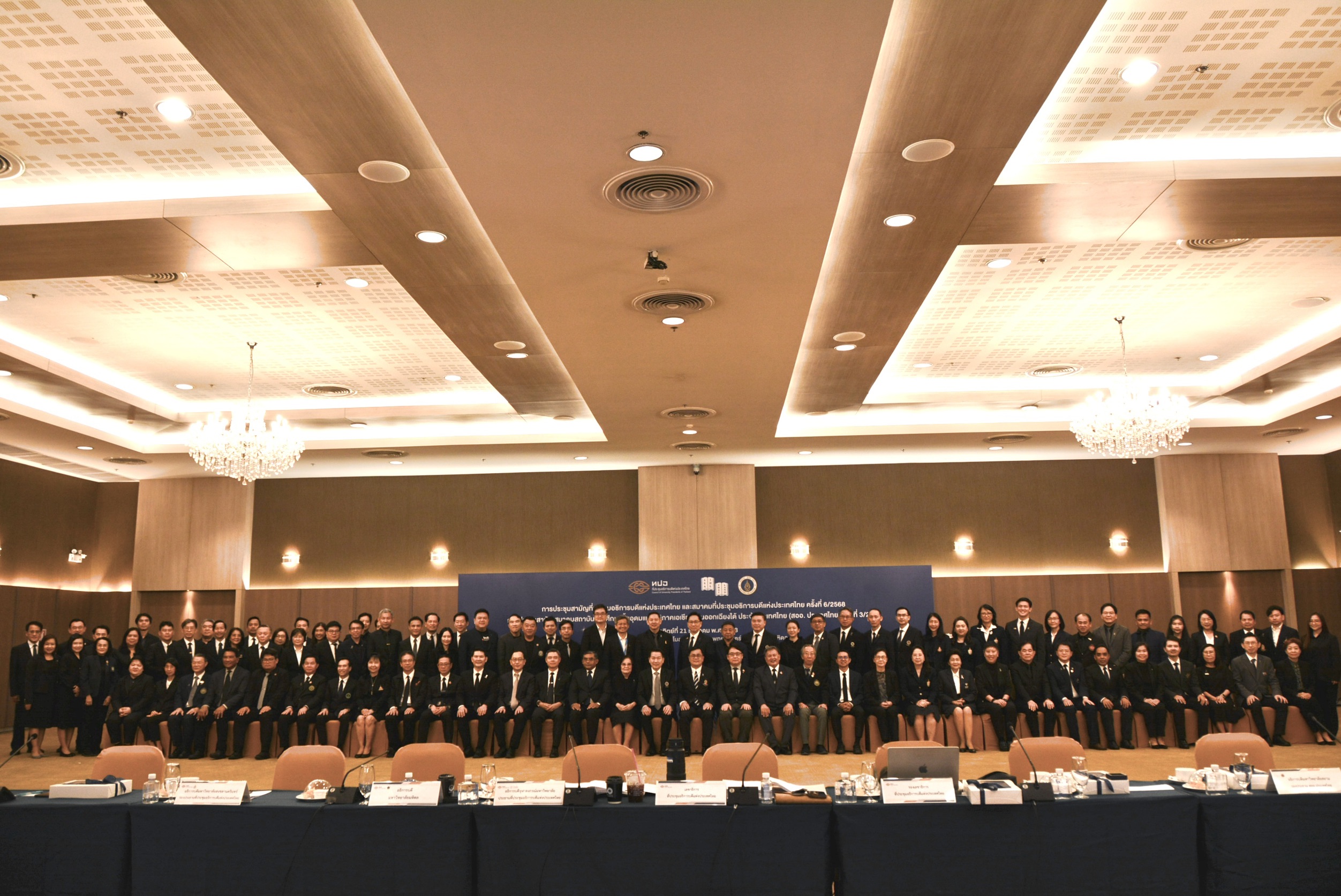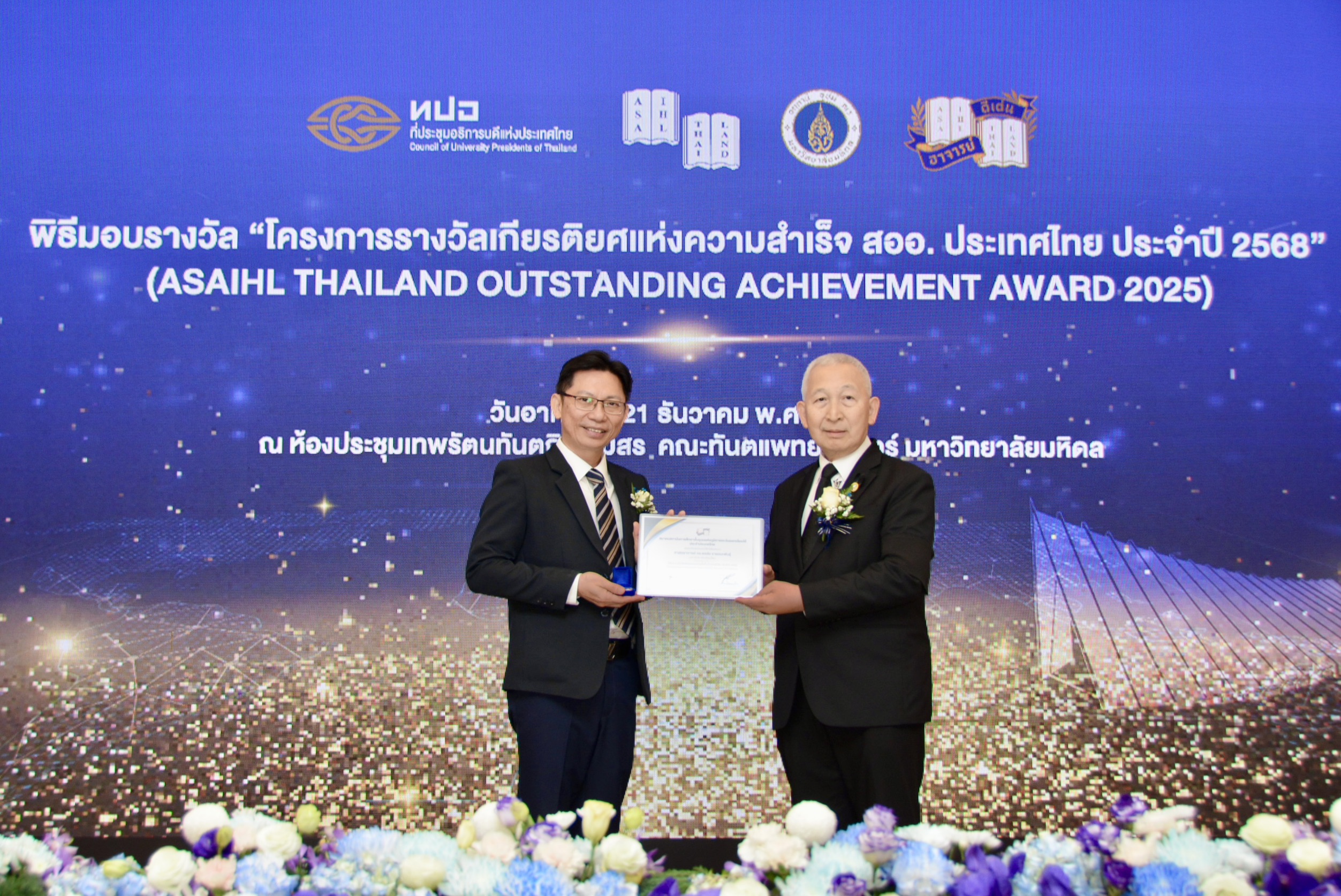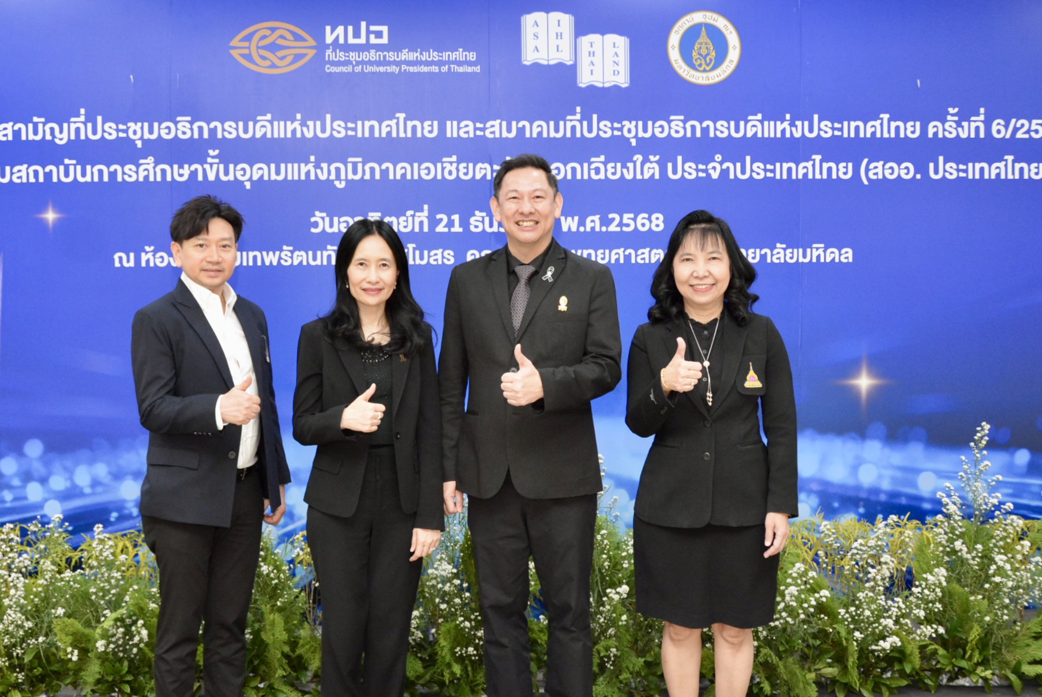 ศาสตราจารย์ ดร.นพ.พงษ์รักษ์ ศรีบัณฑิตมงคล อธิการบดีมหาวิทยาลัยเชียงใหม่ พร้อมด้วยคณะผู้บริหารมหาวิทยาลัยเชียงใหม่ ร่วมการประชุมสามัญที่ประชุมอธิการบดีแห่งประเทศไทยและสมาคมที่ประชุมอธิการบดีแห่งประเทศไทย ครั้งที่ 6/2568 และการประชุมสามัญ สออ.ประเทศไทย ครั้งที่ 3/2568 พร้อมด้วยอธิการบดี รองอธิการบดี จาก 36 สถาบันสมาชิกเข้าร่วมประชุมในครั้งนี้ โดยมีมหาวิทยาลัยมหิดล เป็นเจ้าภาพ ศาสตราจารย์ นายแพทย์ปิยะมิตร ศรีธรา อธิการบดีมหาวิทยาลัยมหิดล กล่าวต้อนรับผู้เข้าร่วมประชุมฯ หลังจากเสร็จการประชุมมี พิธีมอบรางวัล “โครงการรางวัลเกียรติยศแห่งความสำเร็จ สออ.ประเทศไทย ประจำปี 2568” ซึ่งมีคณาจารย์ จากมหาวิทยาลัยเชียงใหม่เข้ารับรางวัลได้แก่ ศาสตราจารย์ ดร.พรชัย ราชตนะพันธุ์ อาจารย์ประจำคณะอุตสาหกรรมเกษตร มหาวิทยาลัยเชียงใหม่ และ ศาสตราจารย์ปฏิบัติ ดร.เศรษฐ์ สัมภัตตะกุล ผู้อำนวยการสำนักบริการวิชาการ มหาวิทยาลัยเชียงใหม่ ณ ห้องประชุมเทพรัตนทันตกิจสโมสร ชั้น 4 คณะทันตแพทยศาสตร์ มหาวิทยาลัยมหิดล เมื่อวันอาทิตย์ที่ 21 ธันวาคม 2568